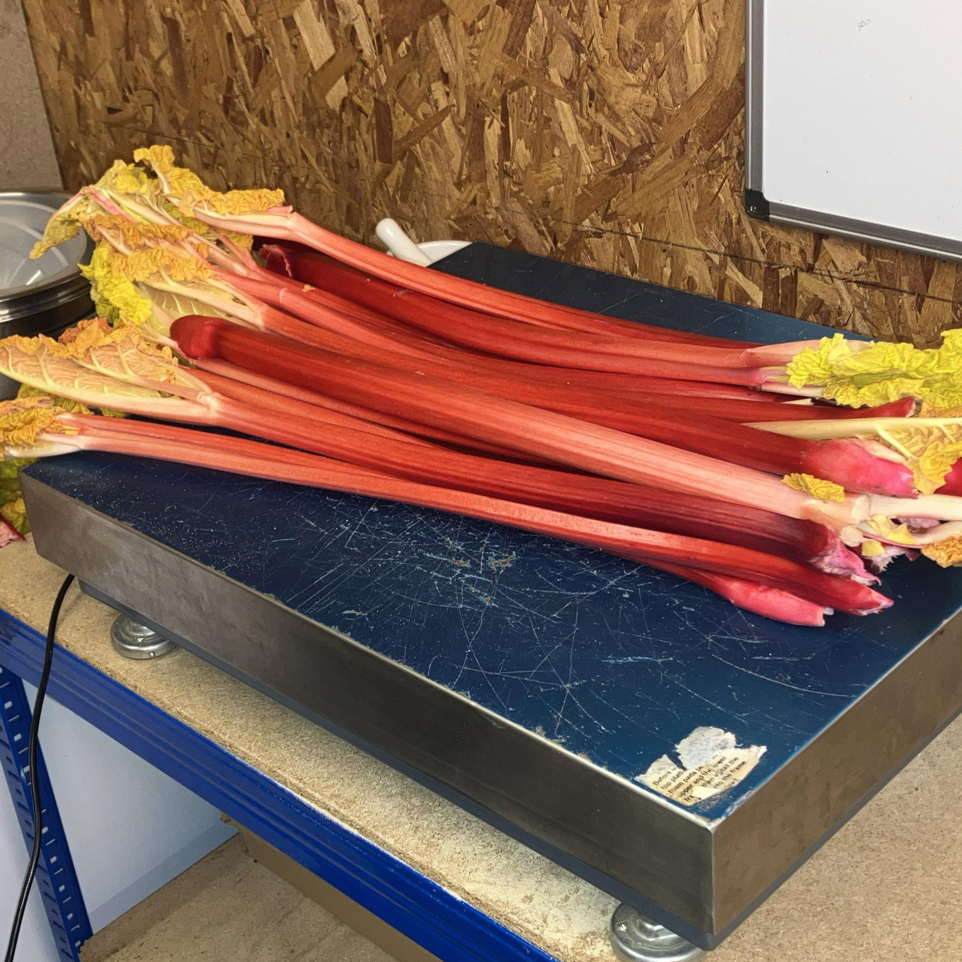 Pictured - 3kg of Forced Yorkshire Rhubarb - 1) being weighed, 2) in the dehumidifier for our York Distillery gin school 3) Ready on the shelf for guests to make gin.